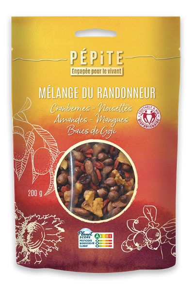 Cranberries, noisettes, amandes toastées, baies de goji et mangues : ce mélange du randonneur est un délicieux assortiment de fruits moelleux et de fruits à coques. Il vous offre un équilibre de textures croquantes, moelleuses et de saveurs naturellement sucrées et toastées.